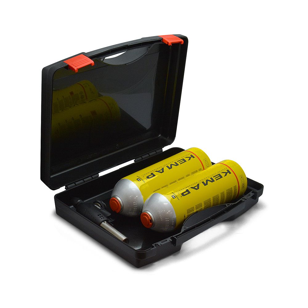 Komplekt on pakitud kohvrisse, mis tagab mugava hoiustamise ja transportimise. Kohver on vastupidav ja kaitseb tooteid kahjustuste eest. Aerogala põleti komplekt koos gaasiga on usaldusväärne ja vastupidav tööriist, mis sobib ideaalselt erinevate lõikamis- ja keevitustööde jaoks.