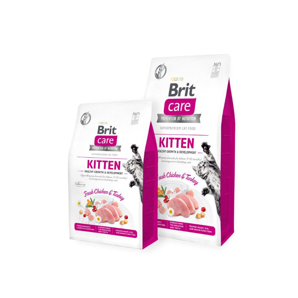 Brit Care Cat Grain-Free Kitten Healthy Growth aitab tagada kassipoegade optimaalse kasvu ning tiinete ja imetavate kasside tervise ja heaolu.