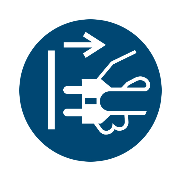 Pistiku eemaldamise kohustuse kleebis tuletab meelde pistiku turvalist eemaldamist pistikupesast, aidates ennetada elektrilööke ja seadmete kahjustusi töökeskkonnas.