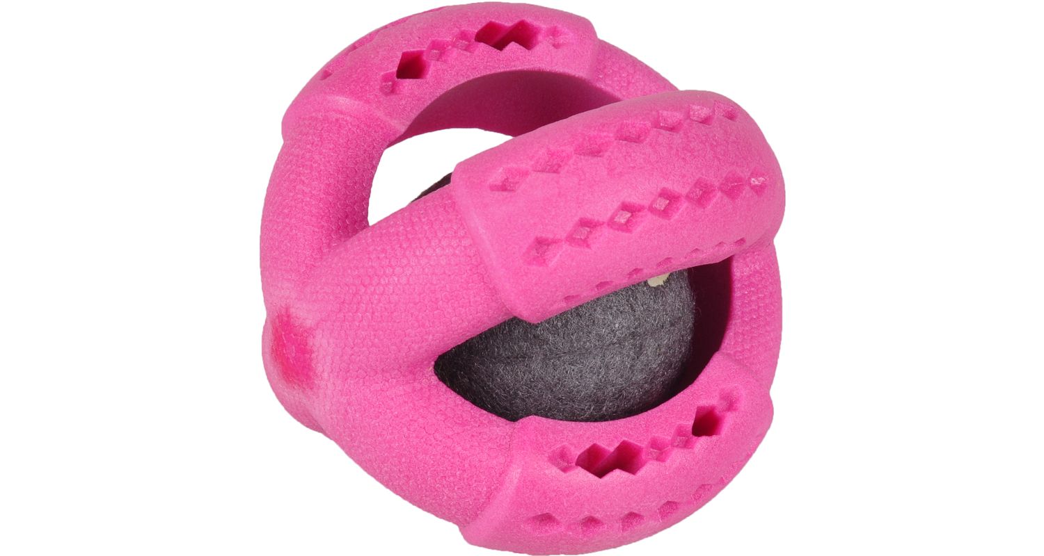 Flamingo kummist ümbrisega tennisepall koerale.