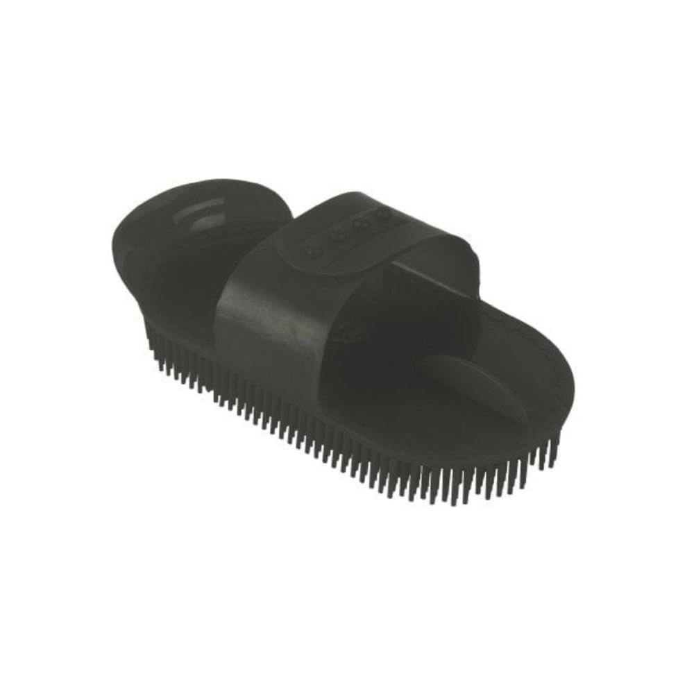 Praktiline hobusekamm kummist, mõõtmetega 175 x 85 mm, sobib suurepäraselt igapäevaseks hoolduseks. Tugevast mustast plastist kamm aitab eemaldada mustuse ja lahtise karva kiiresti ja mugavalt.