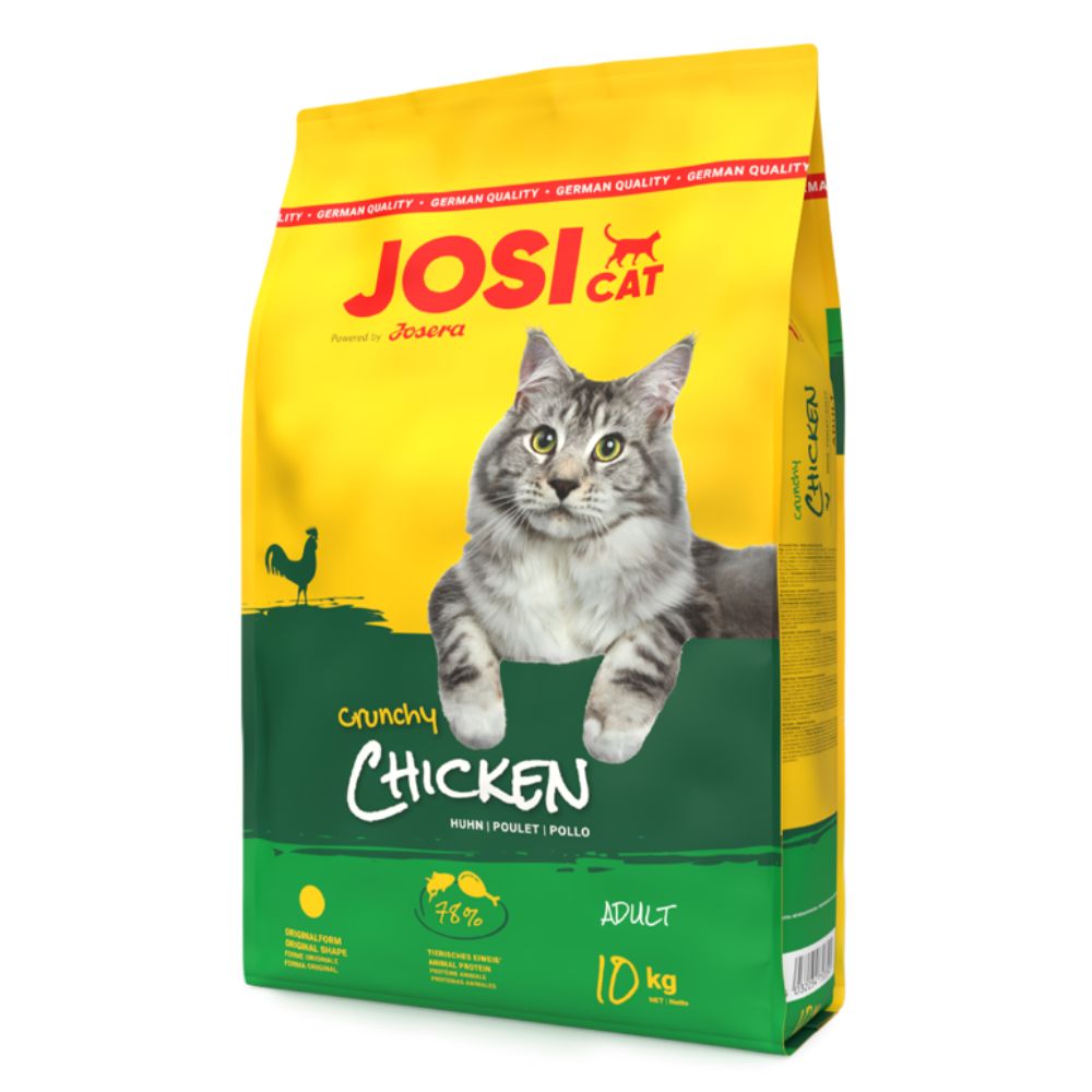 Josera JosiCat Crunchy Chicken kassitoit, 10kg on maitsev ja tasakaalustatud kuivtoit täiskasvanud kassidele, kes armastavad linnuliha. See täistoit sobib nii toa- kui õuekassidele ning sisaldab rikkalikult loomseid valke ja olulisi toitaineid, et hoida teie kassi tervena ja energilisena.