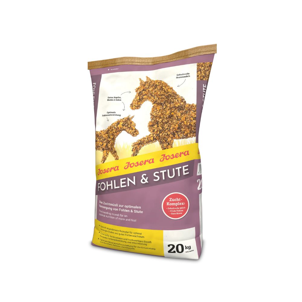 Josera Fohlen & Stute kasvumüsli varssadele ja märadele on spetsiaalselt loodud toitainetega rikastatud sööt, mis toetab tiinete ja imetavate märade ning kuni üheaastaste varssade tervist ja arengut. Tasakaalustatud koostis katab hobuste suurenenud vajadused elutähtsate ainete järele just kõige olulisematel kasvuperioodidel.