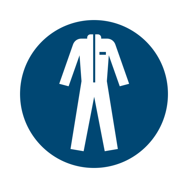 Kaitseriietuse kandmise kohustuse kleebis tuletab meelde kaitseriietuse kandmise vajadust töökeskkonnas, et kaitsta keha vigastuste, kemikaalide või muude ohtude eest.