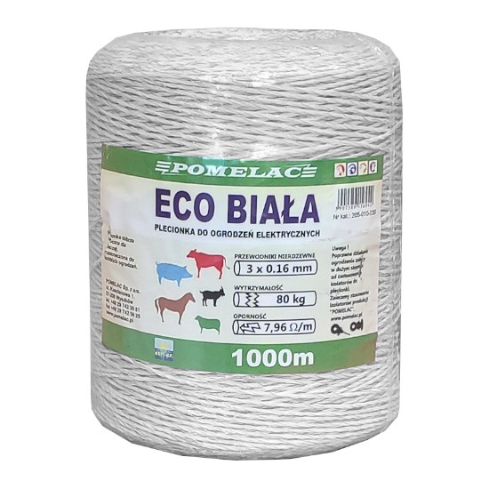 Karjusenöör Eco Valge 1000m (205-010-030) on kerge ja usaldusväärne lahendus lühikeste piirdeaedade tarbeks. Roostevabast traadist juhtmed tagavad piisava elektrijuhtivuse, samas kui UV- ja ilmastikukindel materjal sobib igapäevaseks välistingimustes kasutamiseks.