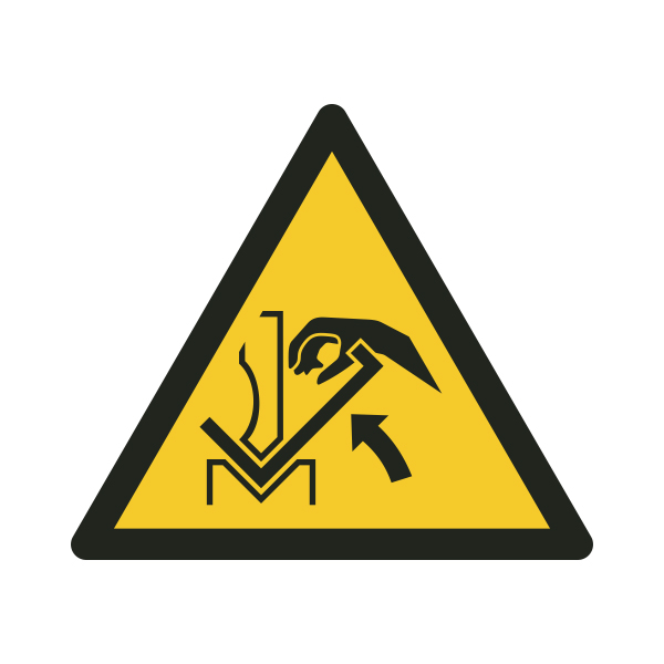 Käte muljumisoht kleebis presspiduris hoiatab selgelt ohtliku tööpiirkonna eest, kus käed võivad sattuda presspiduri liikuva detaili ja tööpinna vahele, ning aitab ennetada tõsiseid vigastusi metall- ja tootmistööstuses.