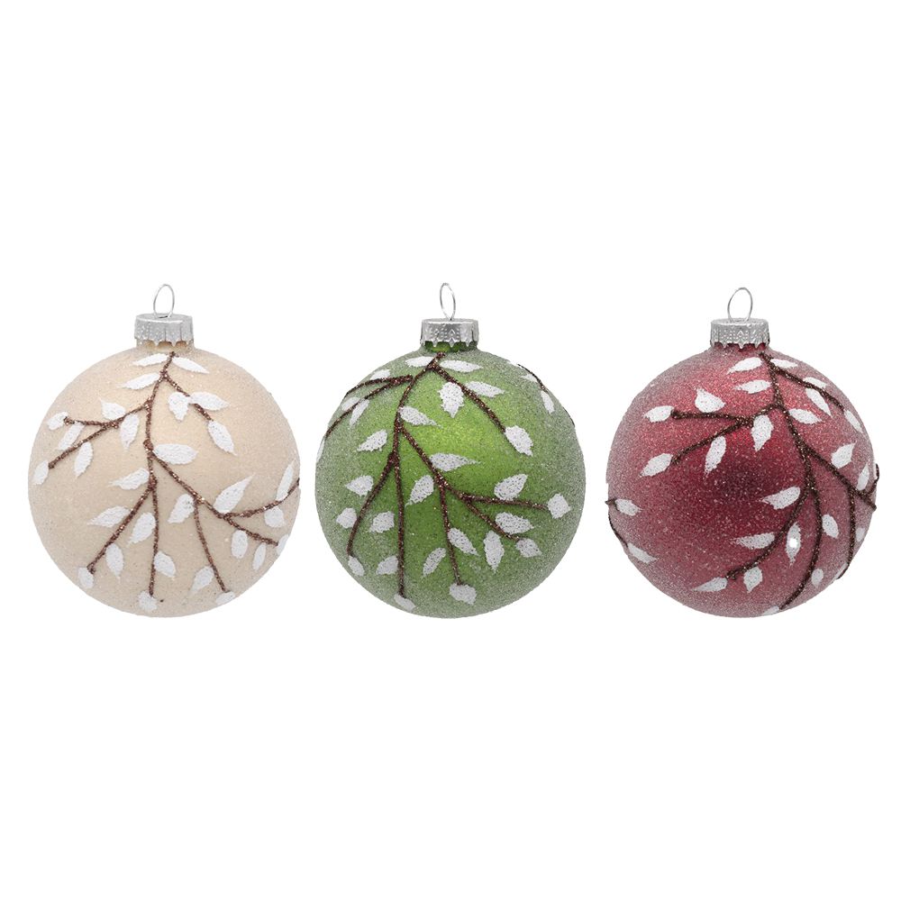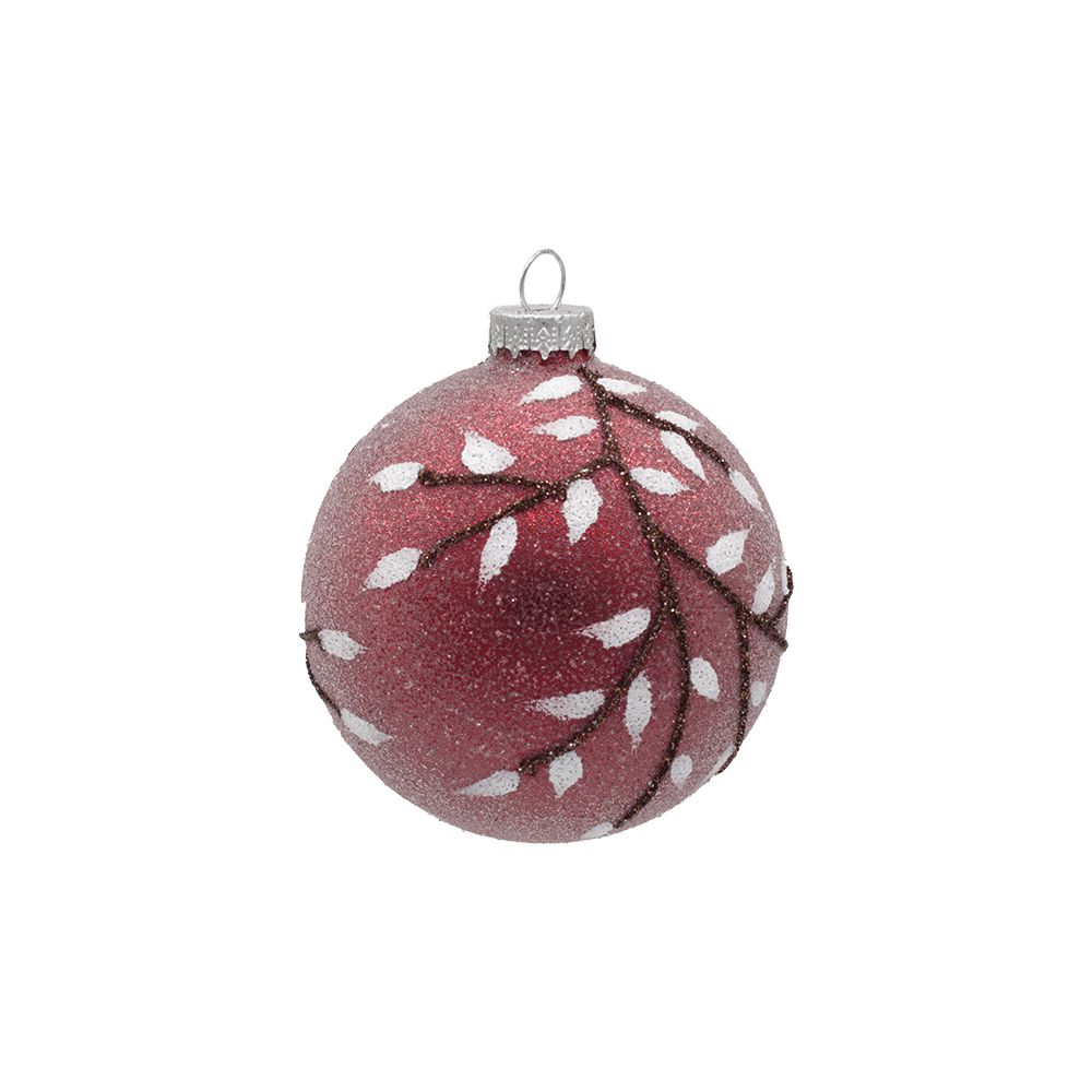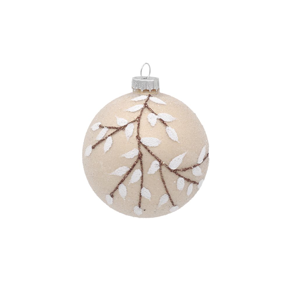 Elegantse mustriga klaasist kuuseehe toob jõulupuule looduslähedase ja rahuliku hõngu. 8 cm läbimõõduga ehe on kaunistatud valgete lehtedega oksamustriga ja saadaval kolmes kaunis toonis.