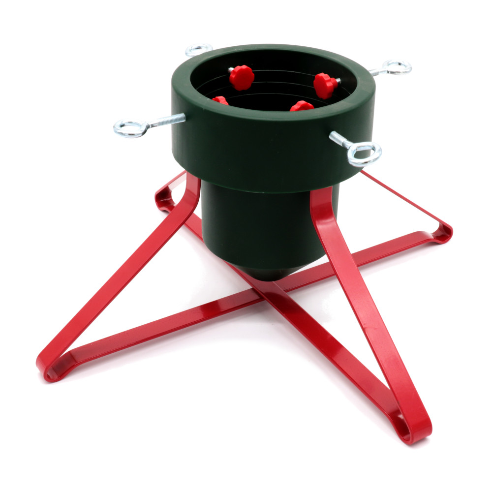 Metallist jalgade ja plastikust anumaga kuusejalg.