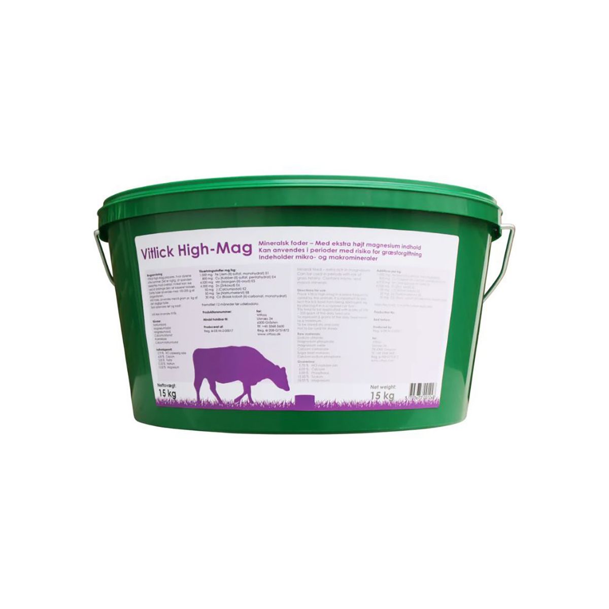 Lakumineraal Vitlick High-Mag on eriti magneesiumirikas (12,5 %) täissööt, mis ennetab karjamaatetaani ja toetab loomade närvi- ning lihasfunktsioone.