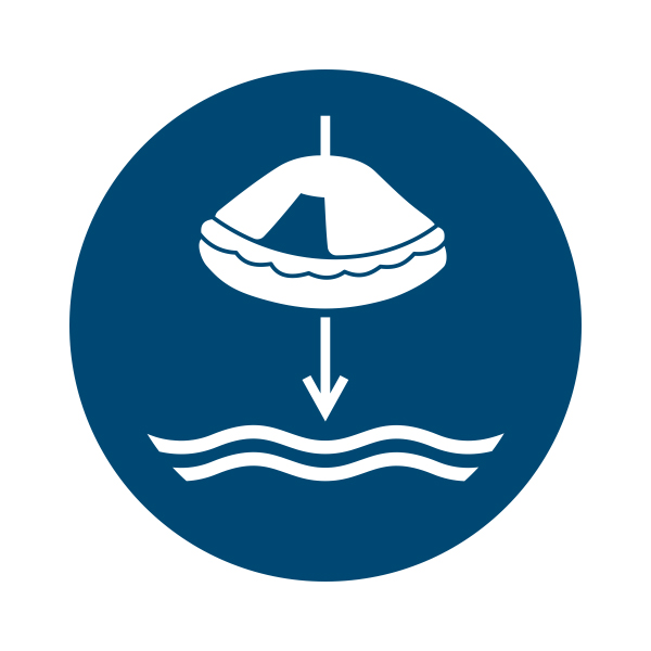Hoiatuskleebis juhendab päästeparve vette laskmist täpselt ettenähtud käivitusjärjekorras. Õige järjekord tagab päästetööde tõrgeteta kulgemise ja ohutuse veekeskkonnas.
