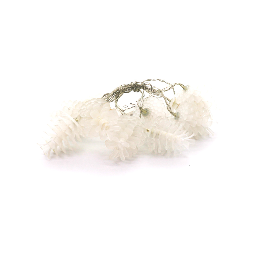 - Käbikujulised valged LED-tuled, mis lisavad kaunistustele piduliku ja looduslähedase ilme.