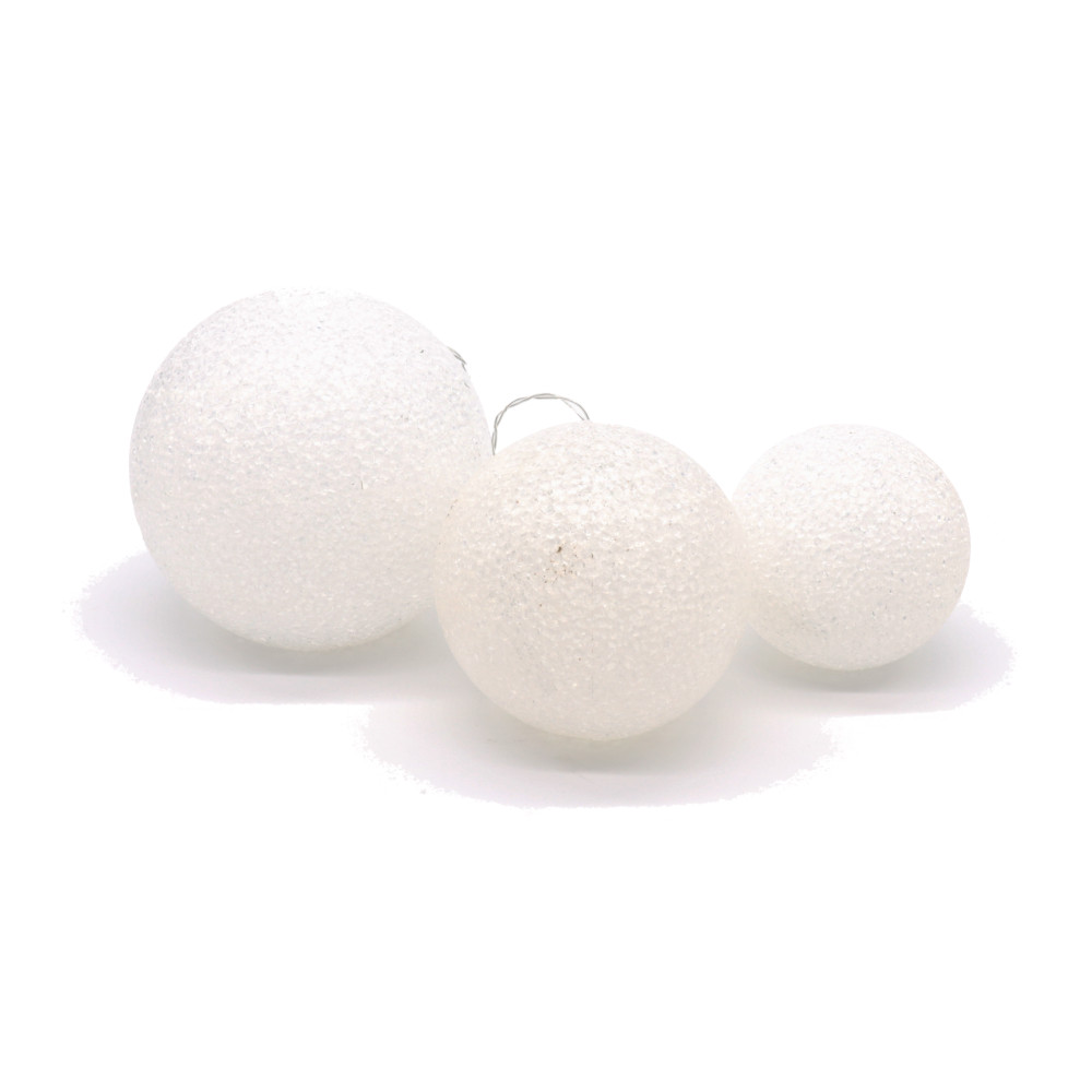 LED valguspallid patareidega, soe valge on kaunis ja praktiline dekoratsioon, mis lisab hubast atmosfääri igasse ruumi. Kolmest erineva suurusega valguspallist koosnev komplekt sobib suurepäraselt kuuse alla, riiulile või teistele pindadele, tuues pehme ja sooja valguse. Kuna valguspallid töötavad patareidega, saad neid paigutada ükskõik kuhu, ilma et peaksid muretsema pistikupesa pärast. Sisseehitatud taimer lülitab tuled iga päev samal ajal sisse, pakkudes muretut kasutuskogemust.