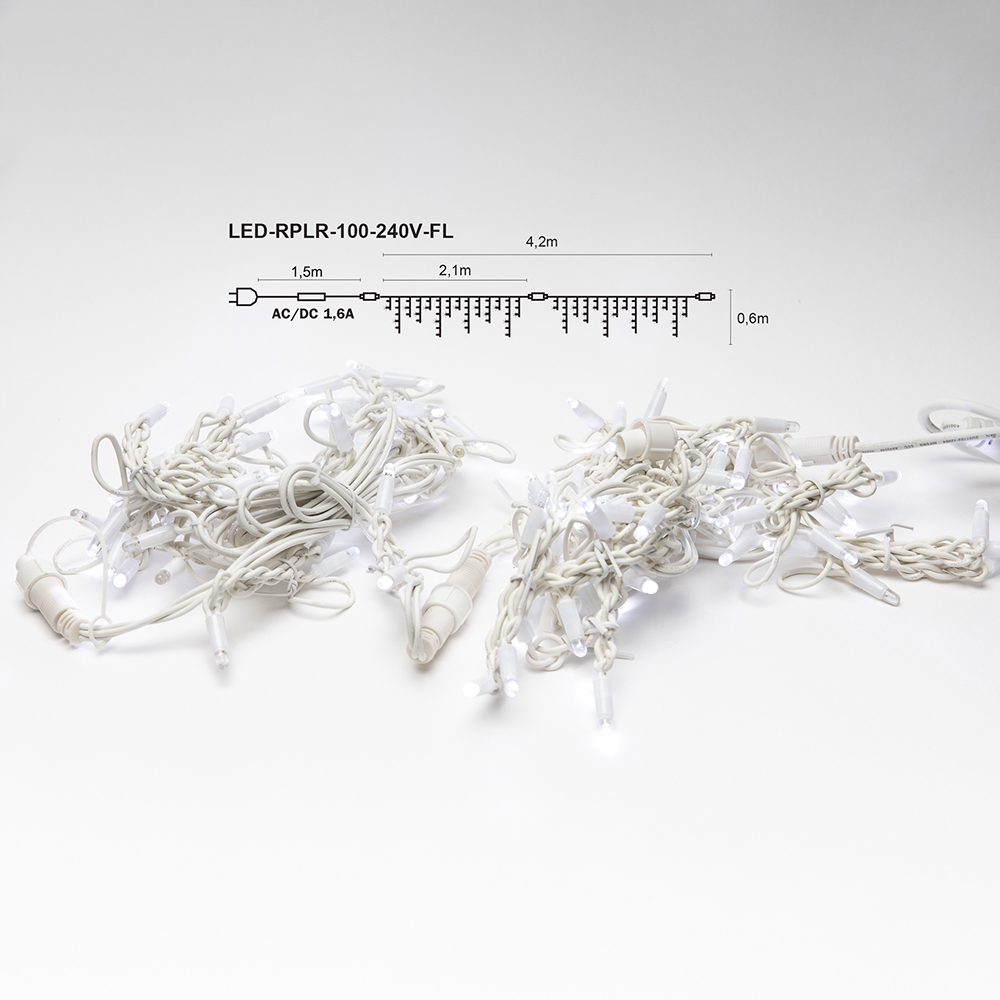Artus Pro Jääpurikakujuline Sädelev LED kardin 100LED 4,2×0,6m VALGE lisab talvisele valguskujundusele puhta ja kirkalt sädeleva efekti. Sobib ideaalselt räästa, rõdu või aiamaja kaunistamiseks.