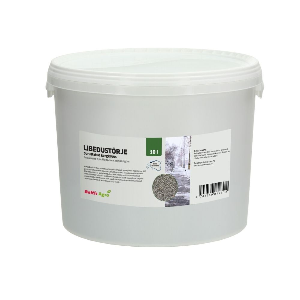 Kergkruus libedustõrjeks 10 l on praktiline ja looduslik lahendus libeduse vähendamiseks jääl ja lumel. Kergkruus libedustõrjeks 10 l sobib hästi koduhoovi, treppidele ja väiksematele käiguteedele, pakkudes pikaajalist ja ohutut haarduvust.