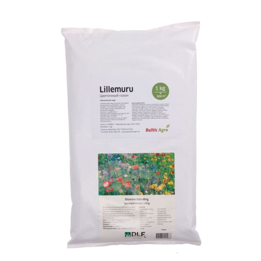 Lillemuru 1 kg on mitmekesine lilleseemnete segu, mis loob suurele alale kauni ja looduslähedase õitsva lillepõllu. Lillemuru sobib ideaalselt aedadesse, haljasaladele ja avaramatele pindadele, pakkudes kogu suve vältel värviküllast vaatepilti.