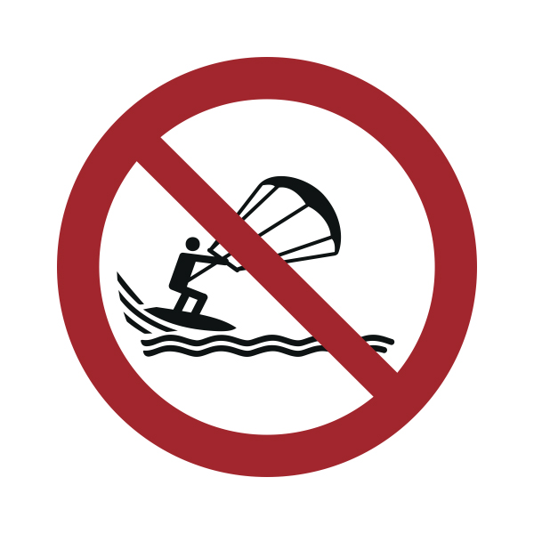 Lohe- või purilauasõidu keelamise kleebis annab selge hoiatuse, et lohe- ja purilauasõit selles piirkonnas on keelatud, aidates ennetada õnnetusi ja tagada turvalisust veekogudel.