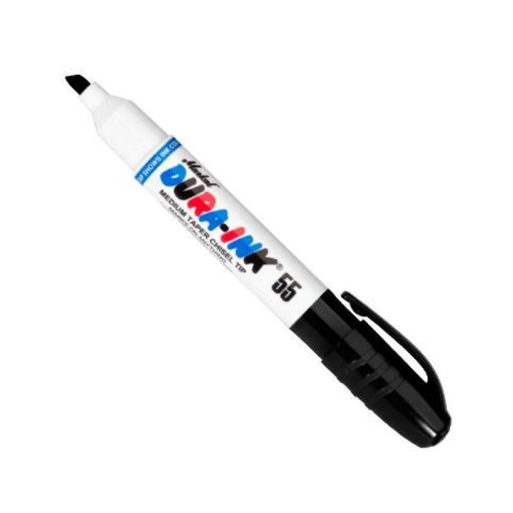 Marker Dura-ink 55 must veekindel lõigatud ots on vastupidav ja mitmekülgne tööriist täpseks ja laiaks joonmärgistuseks ka rasketes tingimustes.