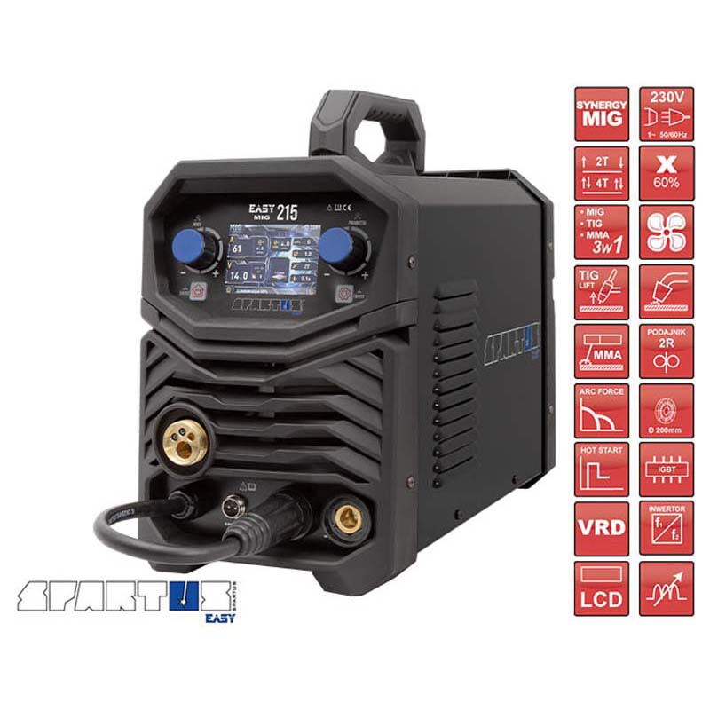 MIG keevitusinverter EasyMIG215Inverter on mitmekülgne traadikeevitusseade, mis sobib nii traadikeevituseks kui elektroodkeevituseks. Lisaks on võimalik kasutada ka TIG keevitust (LIFT tõstega süüde). Seade baseerub IGBT transistoritel ja töötab ühefaasilise toitega.