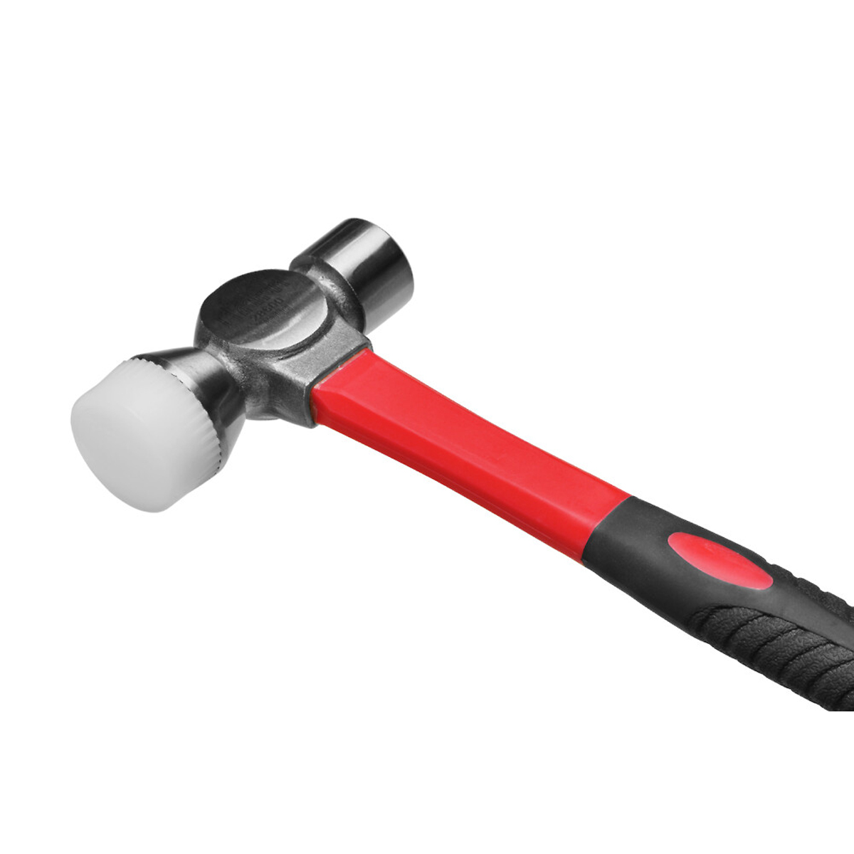 Vasaral on kergelt vahetatav nailonpea, mis võimaldab kasutada erinevaid pehmeid metallist vasarapeasid, nagu vask, messing ja alumiinium.