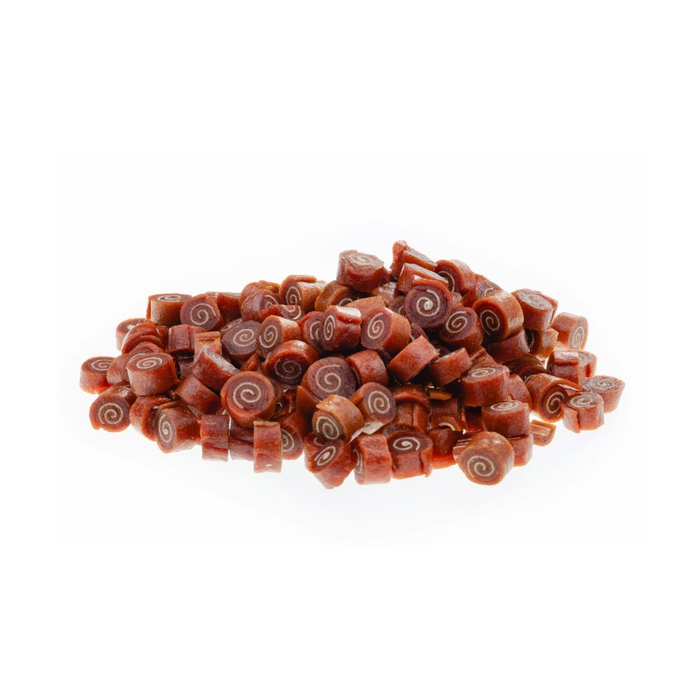 Pardiliharullid on maitsvad ja aromaatsed maiused, mis ühendavad endas pardi ja tursa liha. Väikesed minirullid sobivad hästi treeningupreemiaks või igapäevaseks maiustamiseks igas suuruses koertele.