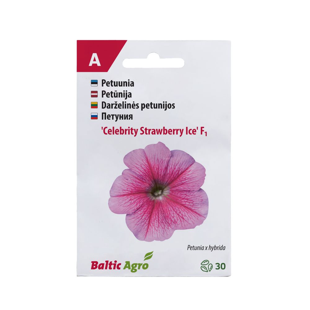 Petuunia ‘Celebrity Strawberry Ice’ on madalakasvuline ja kompaktne hübriidpetuunia multiflora sordirühmast, mis paistab silma efektse mustriga õitega. Sobib hästi peenrasse või pottidesse, olles samas ka vihmakindel.