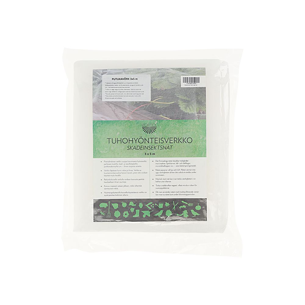 Putukavõrk taimedele 3×5 m, 7 m² – Putukavõrk kaitseb köögivilju taimekahjurite eest. Keskkonnasõbralik, vähendab pestitsiidide kasutamise vajadust. Hoiab kärbsed, lehetäid, kirbud ja mardikad mehaaniliselt kontrolli all. Laseb läbi õhku ja vett ning kaitseb tuule, rahe ja tugeva vihma eest. Kaitseb lindude ja loomade eest..