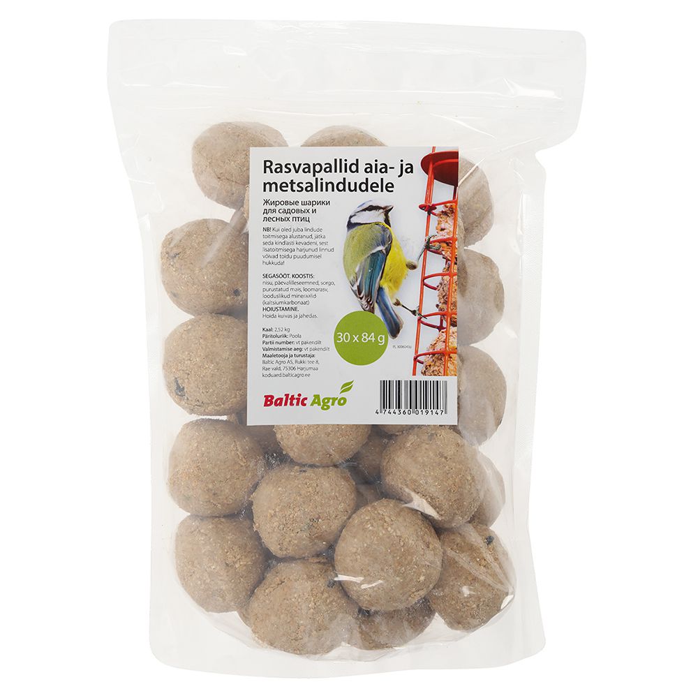Rasvapallid aia- ja metsalindudele 30 x 84 g (zip, võrguta) on toitainerikkad ja loodussõbralikud lisatoidupalad talviseks linnutoidulauaks. Mugavas taassuletavas pakendis sobivad need ideaalselt koduaeda või linnusõbralikku keskkonda.