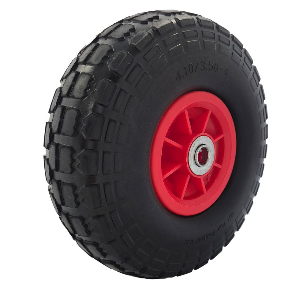 Ratas PU 10×3.50-4 on vastupidav täiskummist polüuretaanratas, mis sobib hästi väiksematele kärudele, aiatööriistadele ja muudele töövahenditele, kus on oluline kerge kaal ja hooldusvaba kasutus.