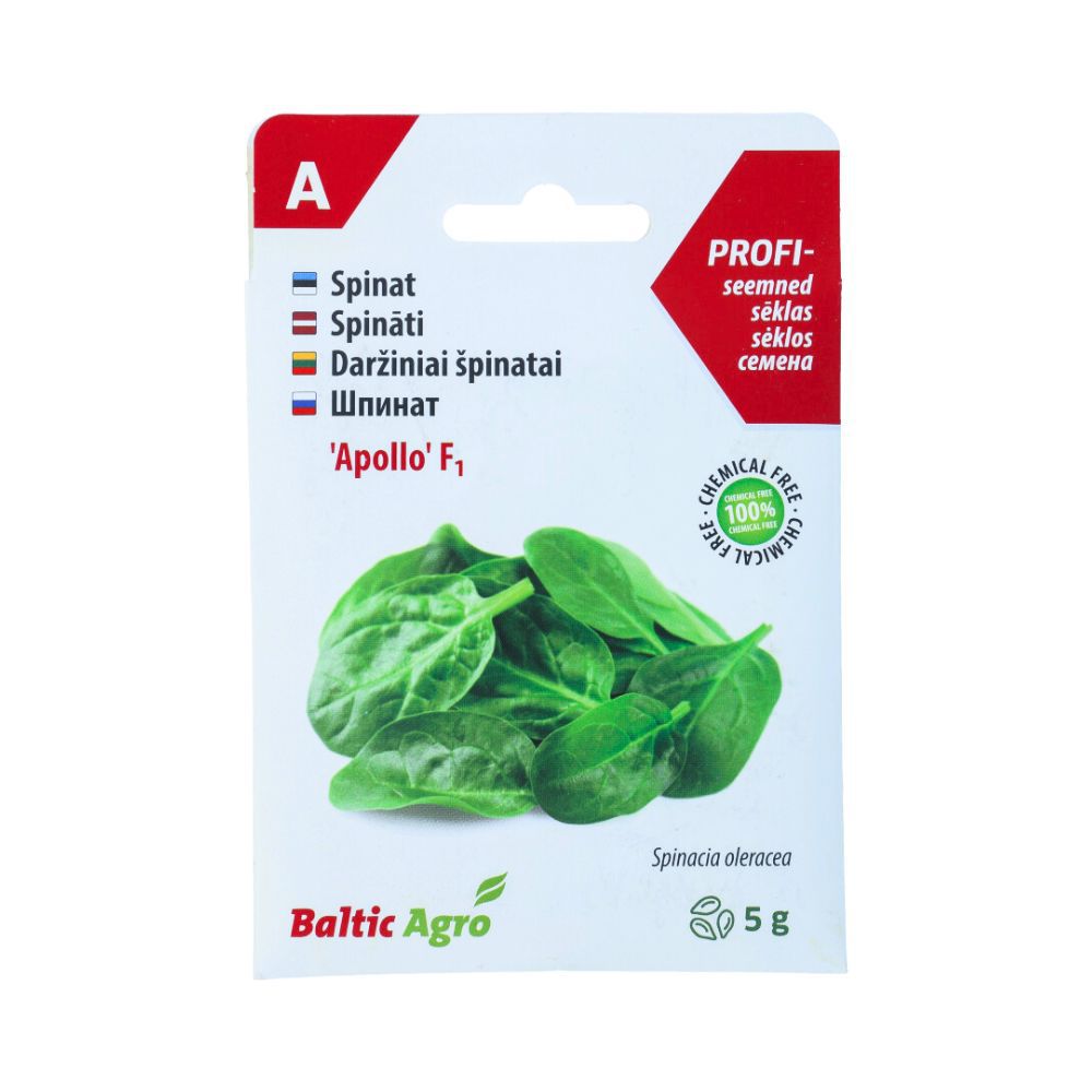 Spinat ‘Apollo’ F1 on tume- ja ovaallehelise välimusega saagikas ning ebajahukastekindel kevad-sügissort. Noored lehed sobivad suurepäraselt suppide, kala- ja liharoogade lisandiks.