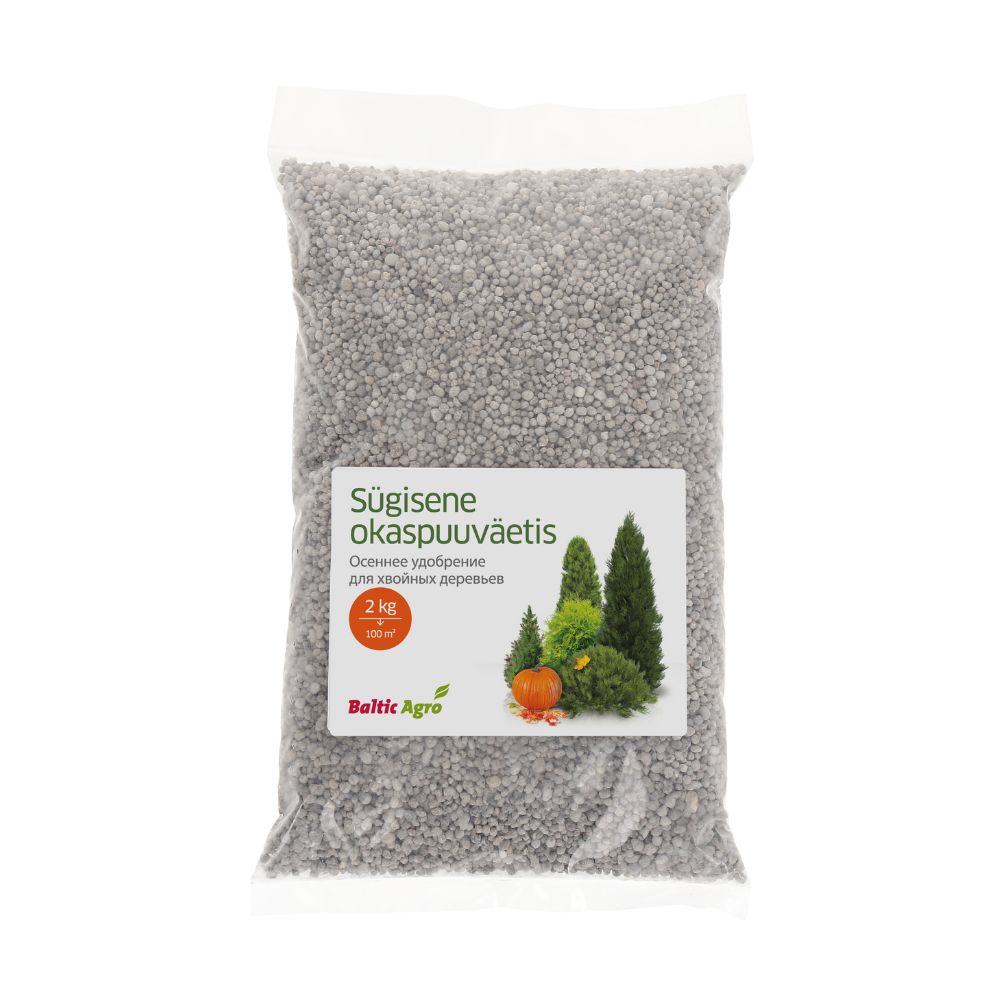 Sügisene okaspuuväetis 2kg – Spetsiaalselt sügiseks mõeldud väetis aitab okaspuid tugevdada ja valmistuda külmaperioodiks.