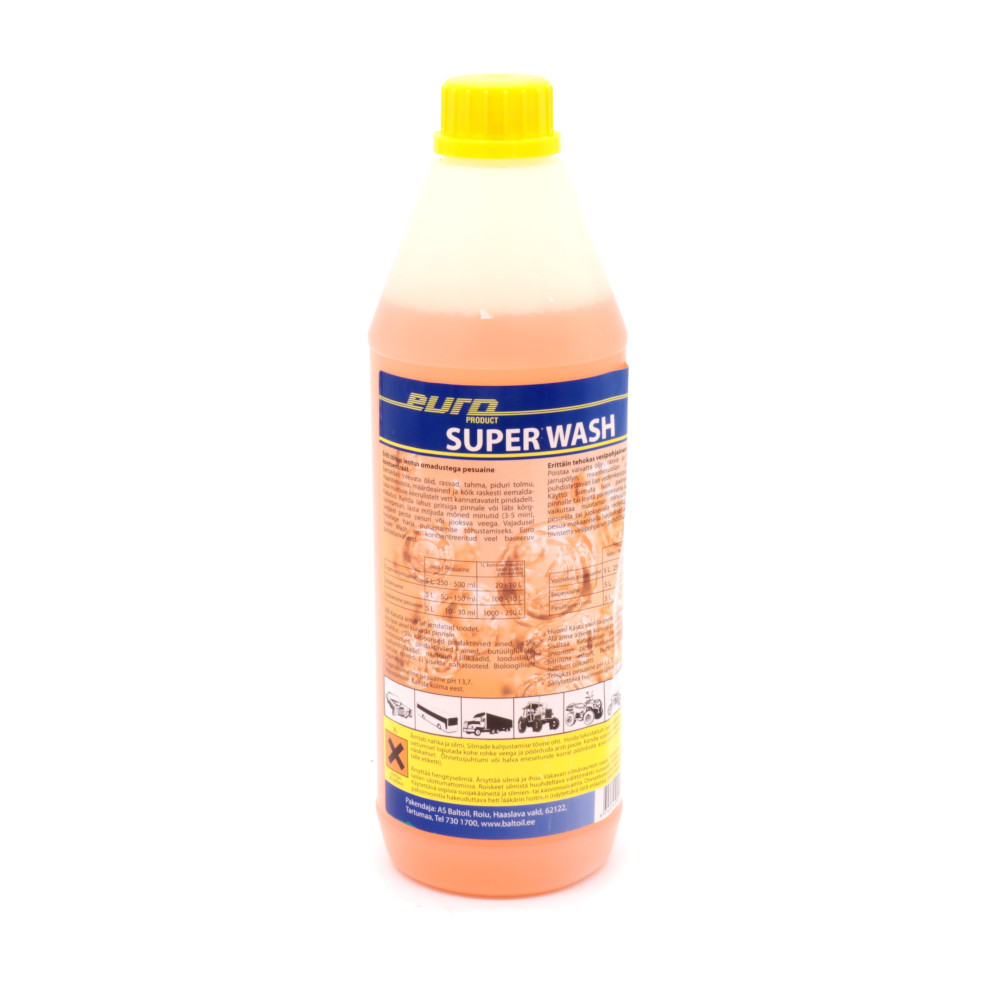 Seejärel pesta pesuri või jooksva veega. Vajadusel kasutage harja puhastamise tõhustamiseks. Euro Super Wash on kontsentreeritud veel baseeruv puhastusvahend.