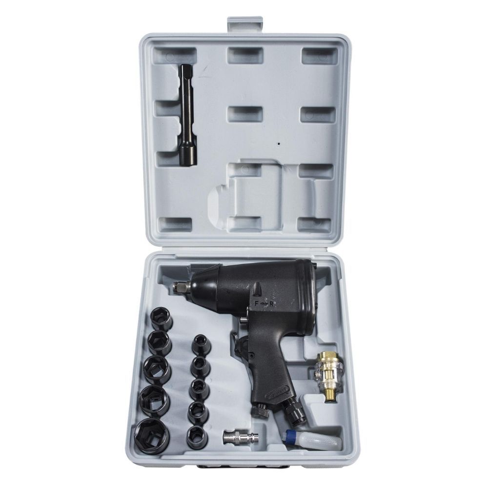 - Komplektis: 1/2″ adapter 125 mm, kiirliitmik, õlifilter, kuuskantvõti ja padrunid (9, 10, 11, 13, 14, 17, 19, 22, 24, 27 mm)