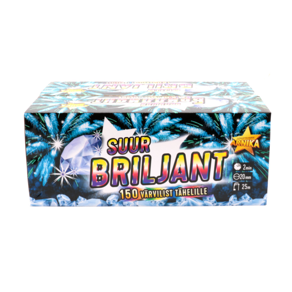 Suur Briljant on tõeline pidustuste kroonijuveel, pakkudes 150 laskuga võimast valguse ja värvide vaatemängu. See ilutulestik tõstab teie õhtu kõrgemale tasemele, täites taeva säravate tähtede ja värvikirevate efektidega. Sobib suurepäraselt suuremateks sündmusteks ja pidustusteks.
