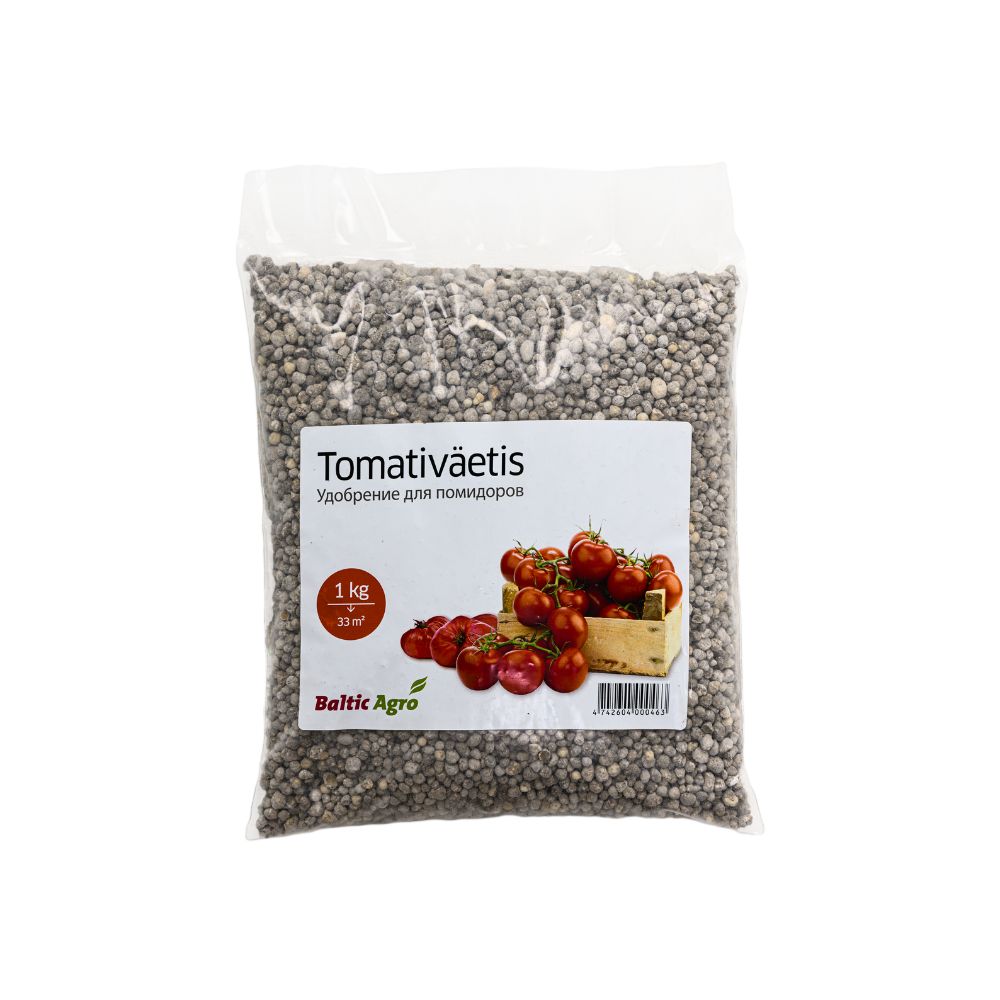 Tomativäetis 1kg – Kloorivaba granuleeritud täisväetis, mis tagab tomatitaimedele tugeva kasvu ja rohke saagi.