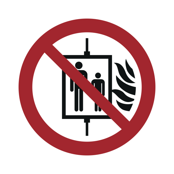 Tulekahju korral liftiga sõitmise keelamise kleebis annab selge hoiatuse, et liftiga tulekahju korral sõitmine on keelatud, aidates ennetada inimeste lõksu jäämist ning tagada evakuatsiooni ohutus tööstus- või elamupiirkondades.