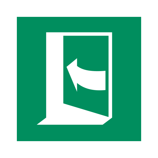 Uks avaneb vasakule surudes kleebis vastab ISO 7010 standardile ja on tähistatud koodiga E022. Ideaalne lahendus ohutuse selgeks ja nähtavaks märgistamiseks töökohtadel, avalikes hoonetes ning tööstuslikes keskkondades.