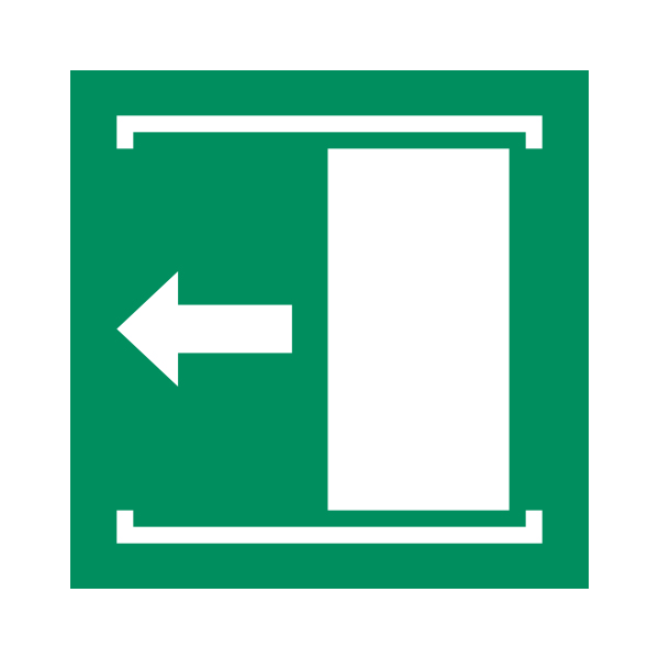 Uks libiseb vasakule kleebis vastab ISO 7010 standardile ja on tähistatud koodiga E034. Ideaalne lahendus ohutuse selgeks ja nähtavaks märgistamiseks töökohtadel, avalikes hoonetes ning tööstuslikes keskkondades.