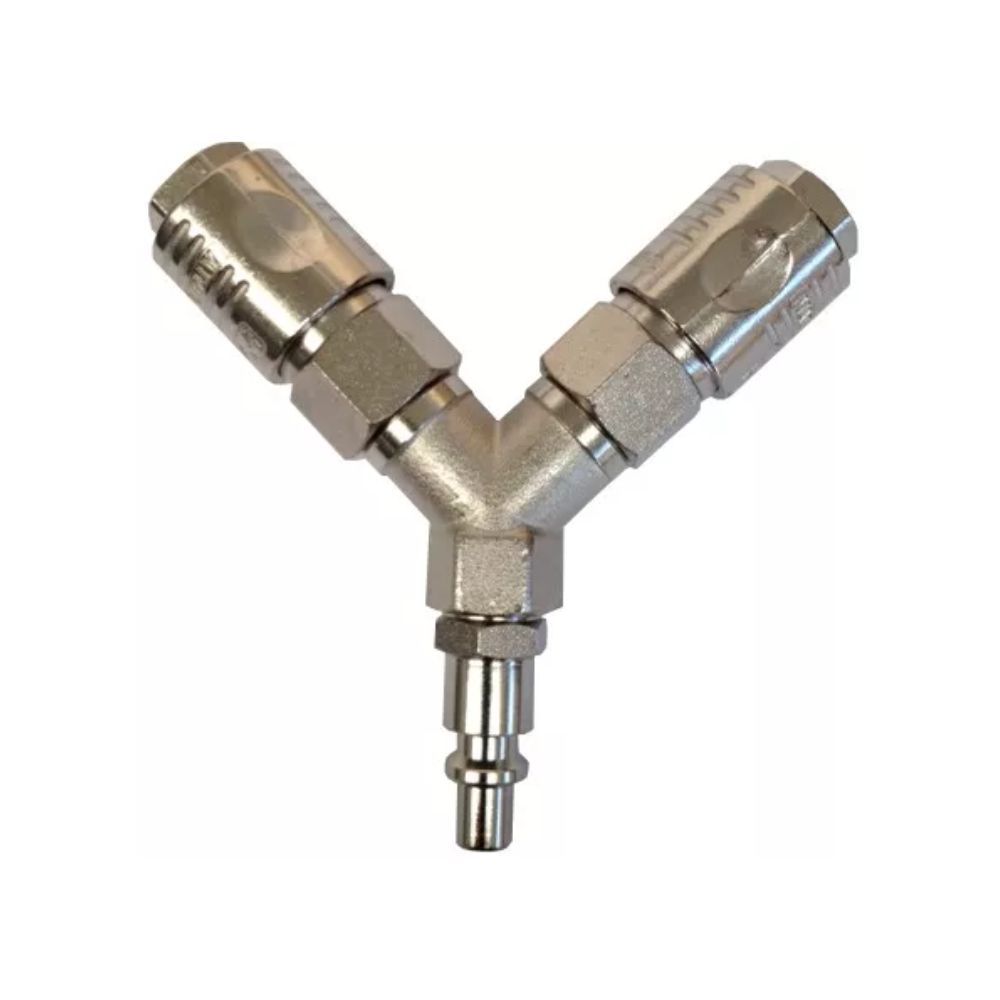 V-kolmik kiirühendustega on praktiline ja vastupidav suruõhujagaja, mis võimaldab kahe tööriista samaaegset ühendamist ühest suruõhuallikast. Lihtne ja mugav kasutada tänu kiirühendustele.